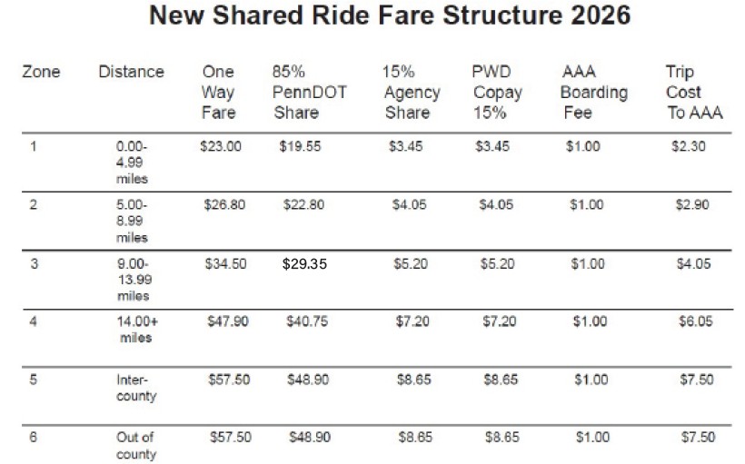 General Public Fixed Route fares: